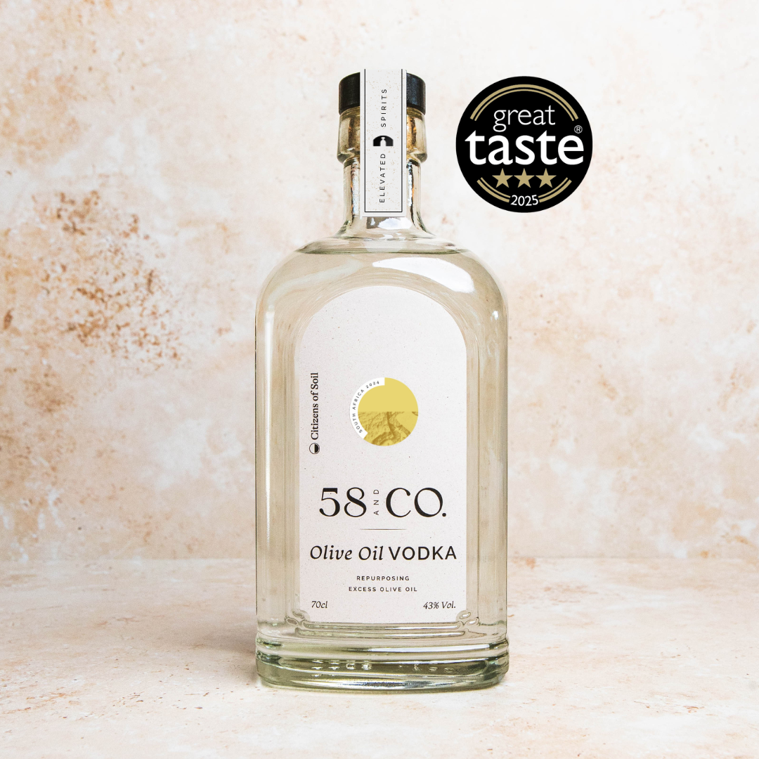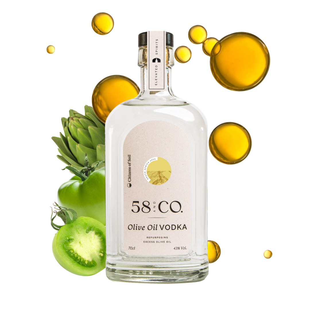 58 and CO Olive Oil Vodka is a clean and characterful spirit, made using repurposed rare extra virgin olive oil from South Africa, harvested exclusively for Citizens of Soil’s Olive Oil Club.
